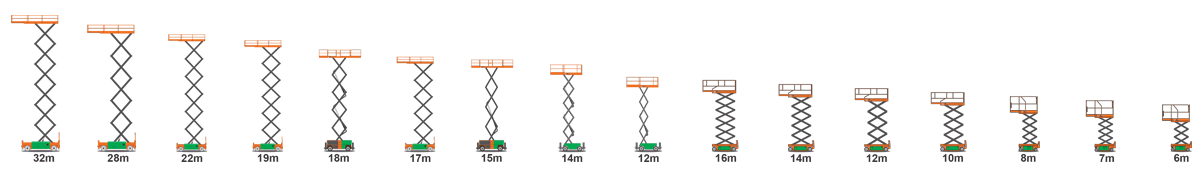 Dingli's scissor series has the most complete working height coverage and the largest range of specifications in the industry, including two categories: electric powered and diesel powered, which are divided into large scissors, compact scissors, mini scissors, etc. The maximum working height of the series covers 6-30m, and the maximum load is 1000kg.